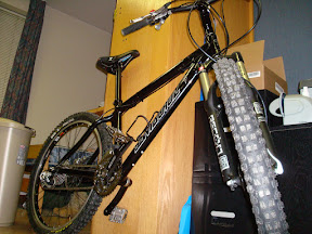 Been a while since I rode but after having converted my All Mountain Bike to a Freeride, I realized that the drop out was making my tire rub against my frame, on top of that because of this rain I misjudged a corner and wiped out in the process I lost some air in my rear tire and scratched my fork all while pushing myself away from the bike. I still love my 2005 Santa Cruz Chameleon.